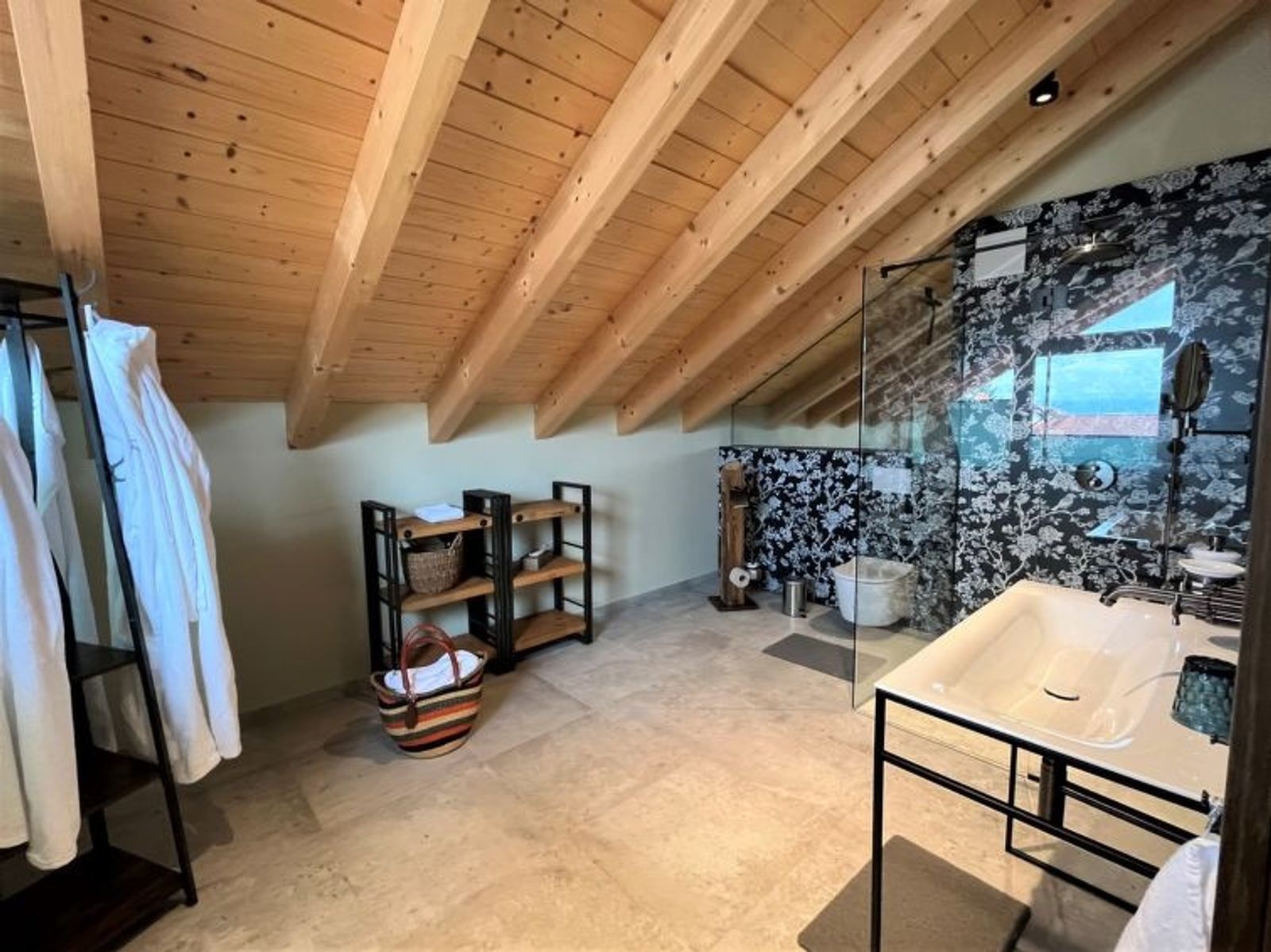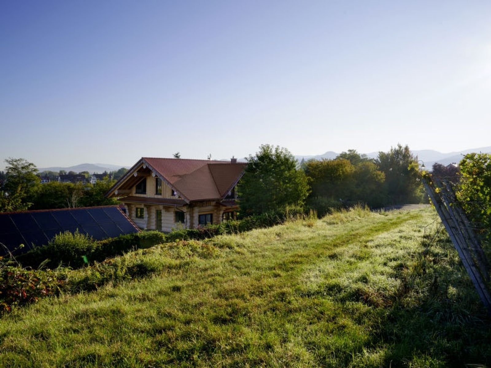 An absolutely exceptional house! Upscale ambience, top facilities, outdoor sauna, hot tub and outdoor shower. Due to the spacious layout and facilities, it is also ideal as a location for workshops and business meetings. Very beautiful, very comfortable timber house "Schwarzwaldchalet de luxe mit Sauna", 2 storeys, detached, built in 2023. On the outskirts, 600 m from the centre of Heitersheim, in the district Breisgau-Hochschwarzwald, in a quiet, sunny, elevated position in the residential district, in the countryside. For shared use: swimming pool heated (10 x 5 m, seasonal availability: 01.Jan. - 31.Dec. pool opening hours: 08:00-21:00, extra). Private: large, well-kept garden with lawn and wildlife garden. Pool maintenance by the owner/gardener. In the complex: sauna, hot tub (all included), spa area in 600 m for shared use (extra), storage room for bicycles, storage room for skis, washing machine, tumble dryer. Breakfast and half board possible on request (extra). Parking (for 3 cars) on the premises. Carport. Shop, grocery, supermarket 600 m, shopping centre 800 m, restaurant, bar, bakery, café, pub garden 600 m, bus stop "Lindenplatz" 400 m, railway station "Heitersheim" 1.6 km, outdoor swimming pool 2 km, indoor swimming pool 6 km, thermal baths "Vita Classica Bad Krozingen" 6 km. Sports harbour 23 km, golf course (6 hole) 9 km, walking paths from the house, cycle lane 10 m, cable car 32 km, ski lift 32 km, slopes 32 km, ski school 32 km. Nearby attractions: Römermuseum Villa Urbana 1.5 km, Malteserschloß Heitersheim 1.4 km, Kloster St. Trudpert 13 km, Bergwerk Teufelsgrund 15 km, Europa Park Rust 56 km, Zoo Basel 50 km. Well-known ski regions can easily be reached: Belchen 32 km, Feldberg 48 km. Well-known lakes can easily be reached: Schluchsee 60 km, Titisee 53 km. Hiking paths: Schwarzwald, Markgräflerland, Münstertal, Belchengebiet, Vogesen. Object suitable for 6 adults + 2 children.