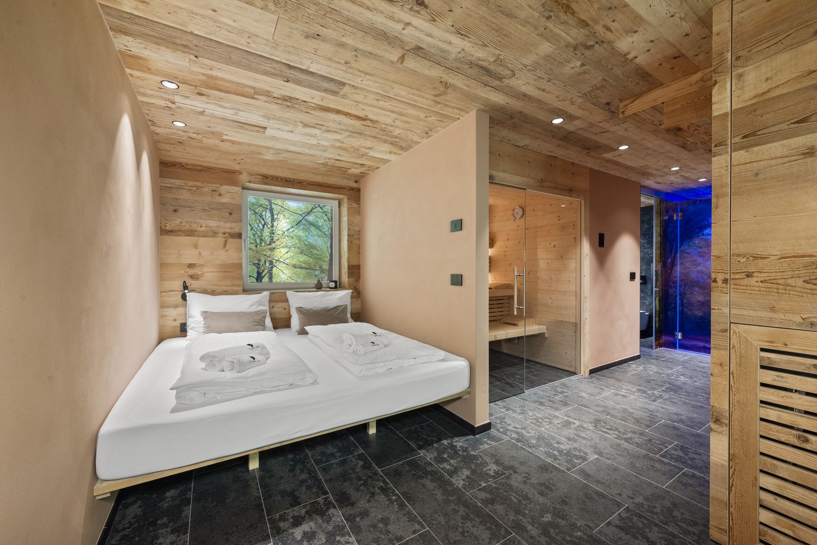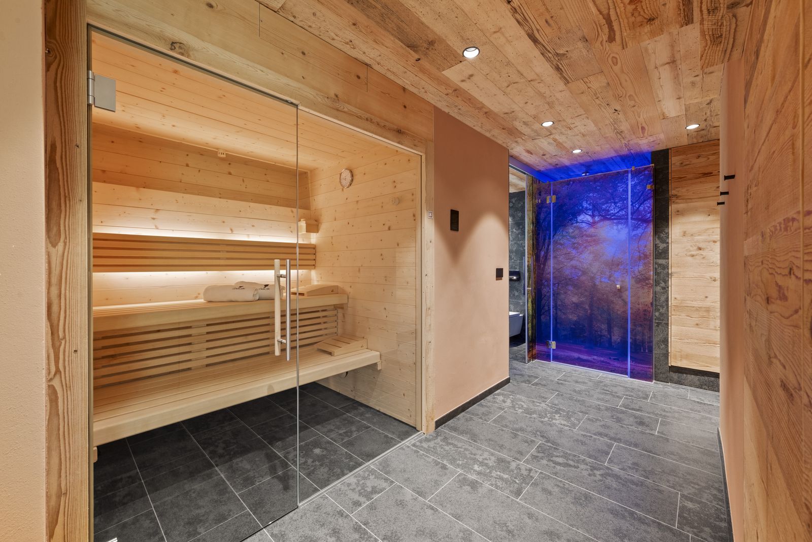 - SPA area with sauna, rain shower, toilet and bidet