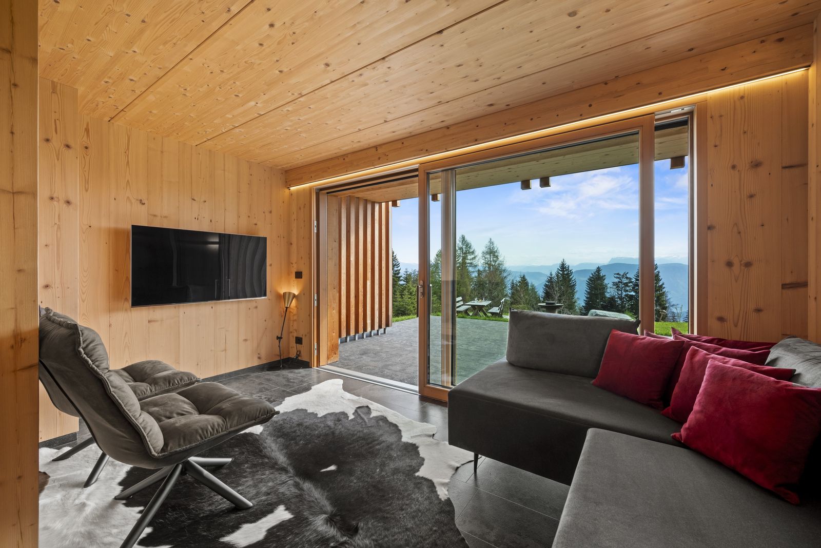 Welcome to the exquisite chalet, which sits majestically on the summit of the Mendel Pass in South Tyrol. Here, high up in this breathtaking nature, a magical chalet awaits for you. Built at the end of 2022 with dedication to detail and the pursuit of perfection. The breathtaking view and an unforgettable oasis of peace and relaxation offers an unforgettable holiday. Everything has been thought through in order to make the stay not only unforgettable but also incomparable. The chalet is a true masterpiece of luxury and modern lifestyle. The next town of Cavareno is about 15 minutes away by car, where you can find numerous shops, as well as restaurants and bars.