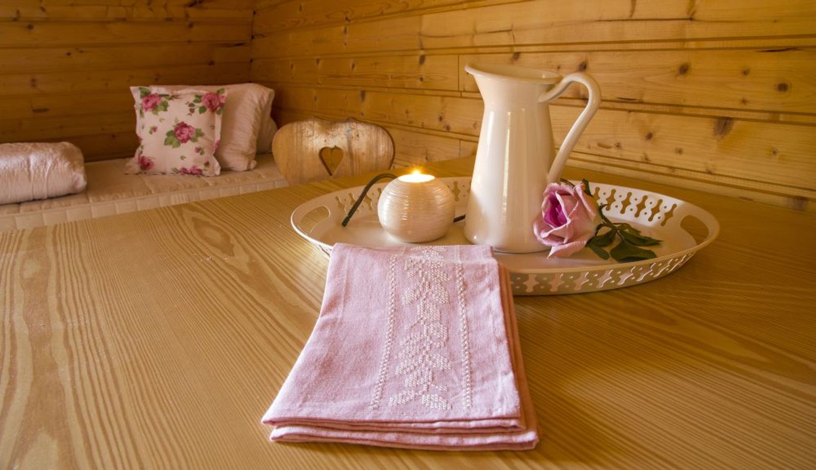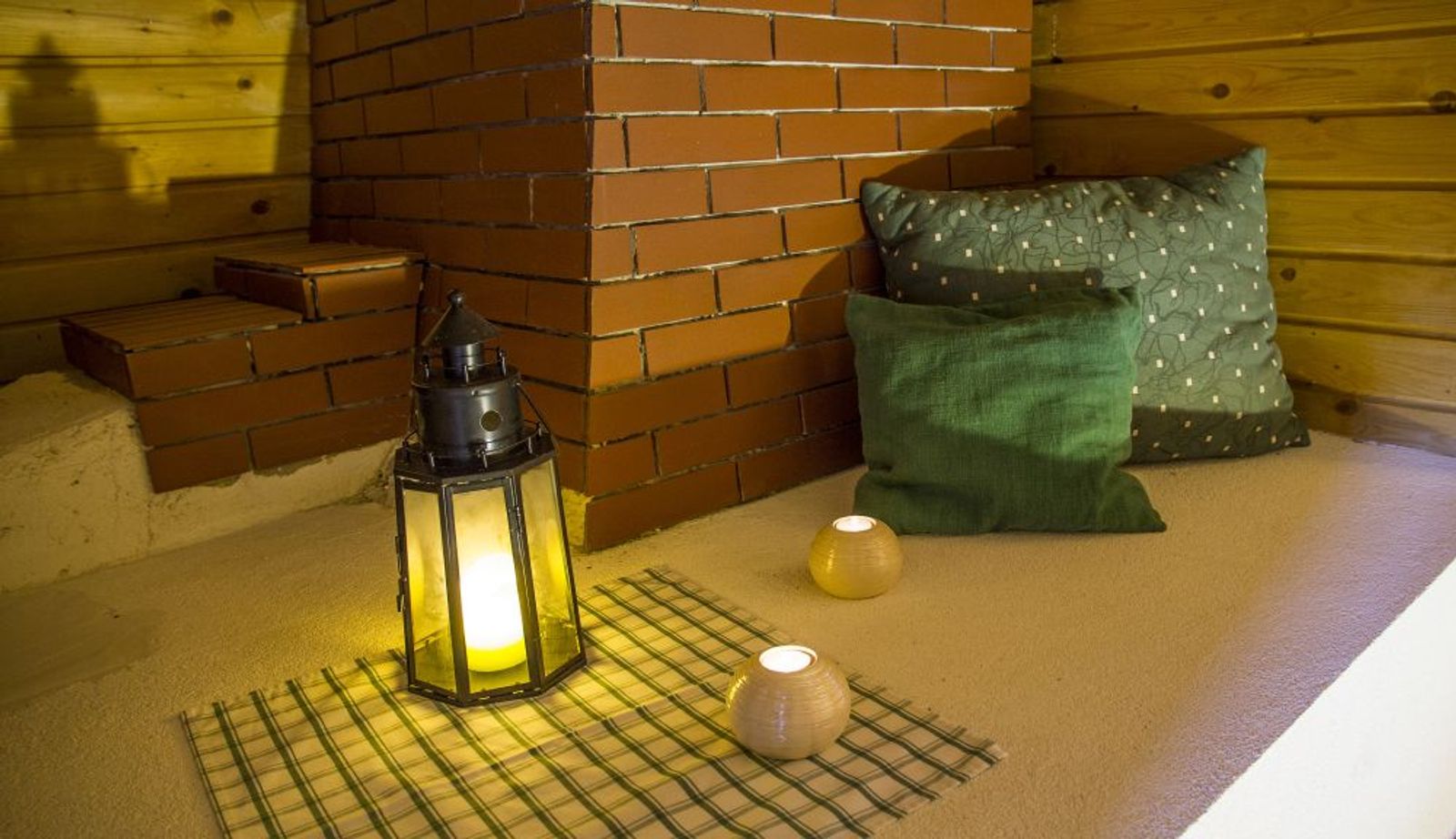- Heating and hot water preparation via a wood stove, electricity via a solar system, and an emergency generator for a hairdryer or cell phone