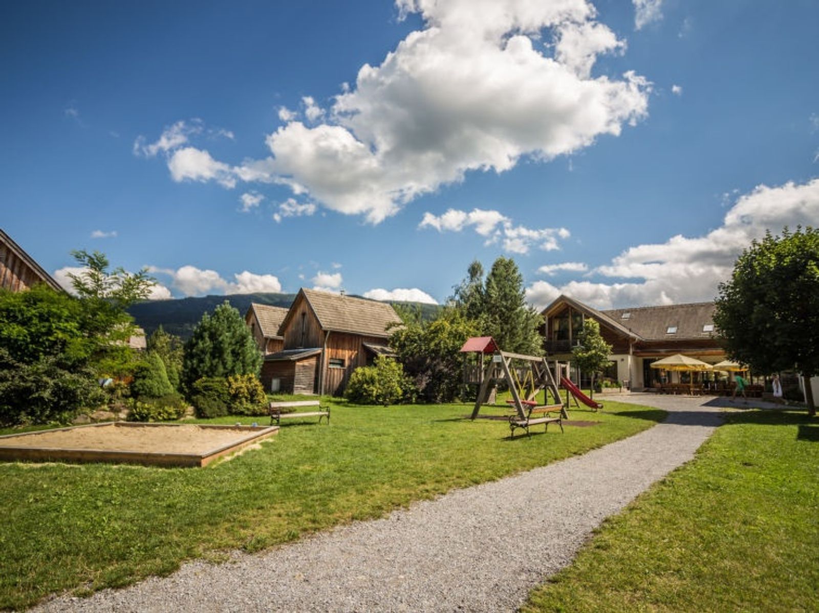 Cosy, comfortable resort "Kreischberg". Below St. Georgen, in a sunny position, 500 m from the skiing area, 50 m from the river. For shared use: park with lawn for sunbathing, biotope, indoor pool heated (9 x 13 m, pool opening hours: 08:00-20:00). In the complex: reception, restaurant, bar, breakfast room, WiFi, sauna, relaxation room, spa area, table tennis, sun terrace, central heating system, washing machine (for shared use, extra). Breakfast and half board possible. Central parking spaces. Grocery 1 km, restaurant 100 m, café, railway station "Murtalbahn" 300 m. Chair lift 500 m, gondola lift, skisport facilities, slopes, ski rental 300 m, ski school, children's ski school, cross country ski track 200 m. Nearby attractions: Bierstadt Murau 8 km. Well-known ski regions can easily be reached: Kreischberg 500 m. Well-known lakes can easily be reached: Badesee Stadl 10 km. Hiking paths: Frauenalpe 15 km, Stolzalpe 12 km. Please note: car-free holiday complex. Suitable for families, baby equipment (extra). The photo is just an example. All houses/apartments are individually designed/furnished. Sauna open daily from 3:00 pm until 8:00 pm. ATTENTION: SUMMER: Murtalcard included!