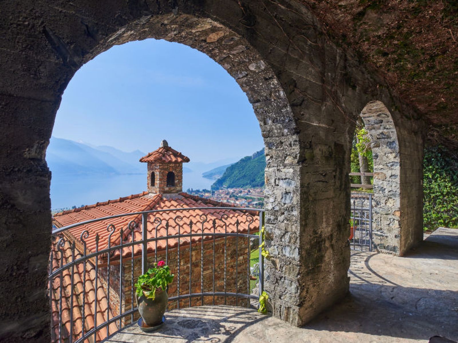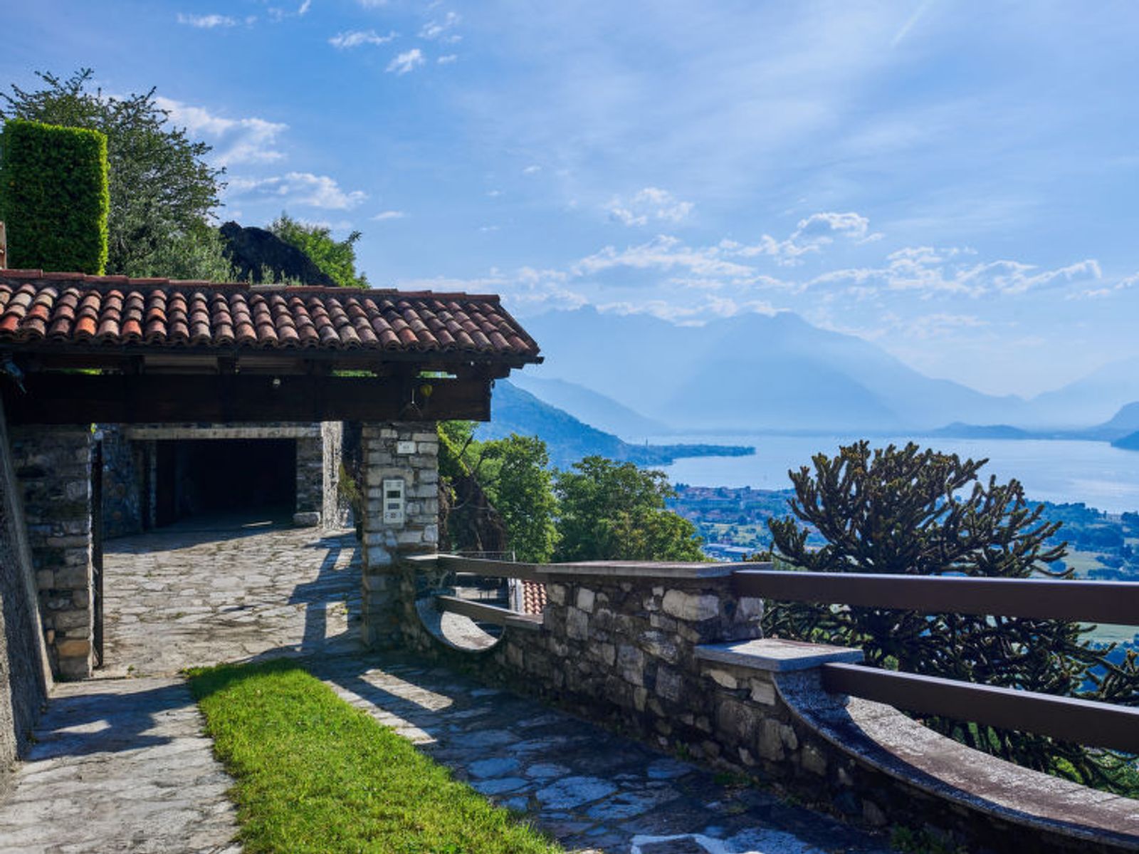 Large, rustic 2-family house "Villa Bellavista", 300 m a.s.l.. Above Dongo 2 km from the centre of Dongo, 48 km from the centre of Como, 40 km from the centre of Lugano, in a secluded position on a slope, 2 km from the lake. For shared use: property (fenced), terraced garden with plants and trees, meadow. Stepped path to the house. Supermarket 1.5 km, bus stop 2 km, railway station "Como" 48 km, grass beach 2 km, outdoor swimming pool 6 km. Marina 2 km, golf course (18 hole) 20 km. Residence with electric gates.