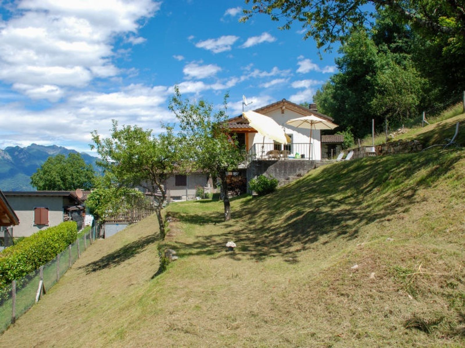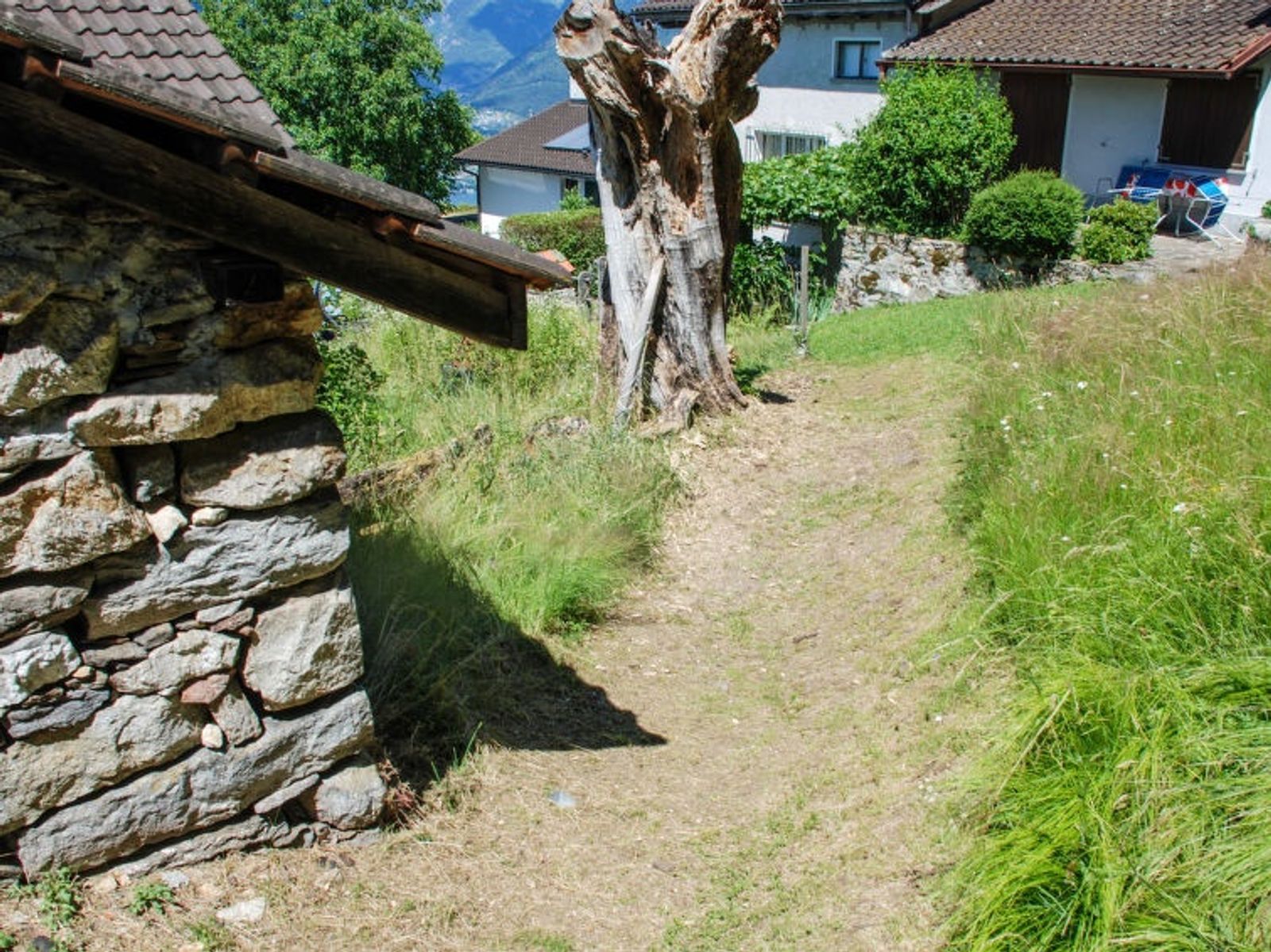 Monti di Piazzogna: Small, beautiful rustic chalet "Monti di Piazzogna", 800 m a.s.l., surrounded by trees and meadows. In the hamlet Monti di Piazzogna, in a quiet, sunny, elevated position, 10 m from the edge of the forest, 6.6 km from the lake, in the countryside, west facing position. Private: natural state property (fenced), beautiful garden to relax. Patio, terrace, fireplace. Motor access to 115 m from the house. 115 m footpath to the house. Public parking 115 m on the road. Grocery 6.6 km, restaurant 6.6 km, bakery 6.6 km, bus stop "Postauto Linie 352" 555 m, lake Lago Maggiore 6.6 km. Walking paths from the house 10 m. Nearby attractions: Monte Verità, Ascona, Madonna del Sasso, Locarno-Orselina, Castelli di Bellinzona, Falconeria Locarno, Ronco sopra Ascona, Isole di Brissago, Mercato Luino (IT). Well-known lakes can easily be reached: Lago Maggiore, Lago di Lugano, Lago di Como. Hiking paths: Alpe di Neggia, Indemini, Monti di Vira und Fosano, Monte Tamaro, Magadinoebene, Naturreservat. Please note: car recommended. The owner does not accept any groups. Animals in the neighbourhood.